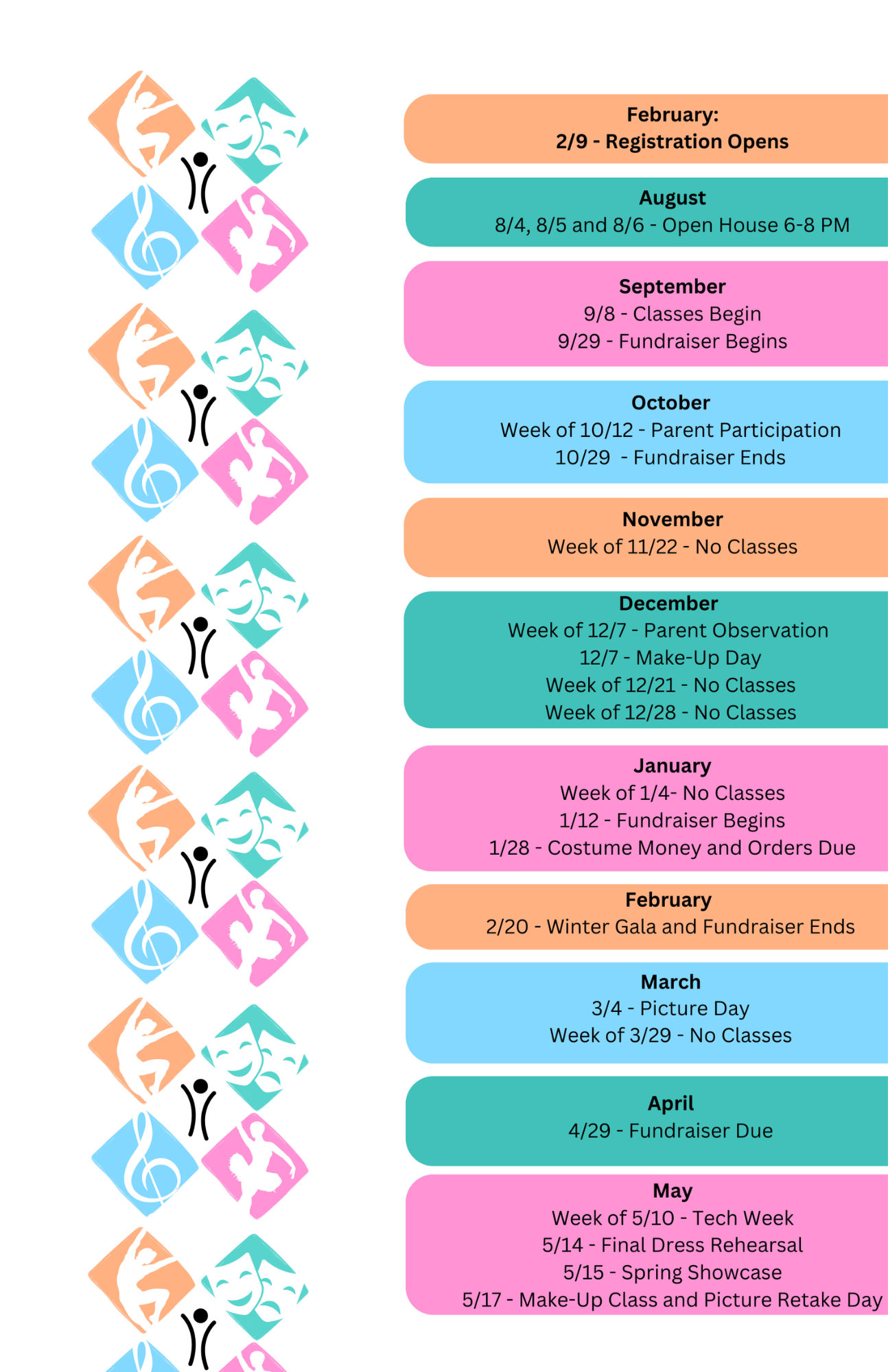 ** This class is offered at no cost to any student registered for at least one class during the 2026-2027 season, and who has completed Musical Theatre & Acting Level 1.